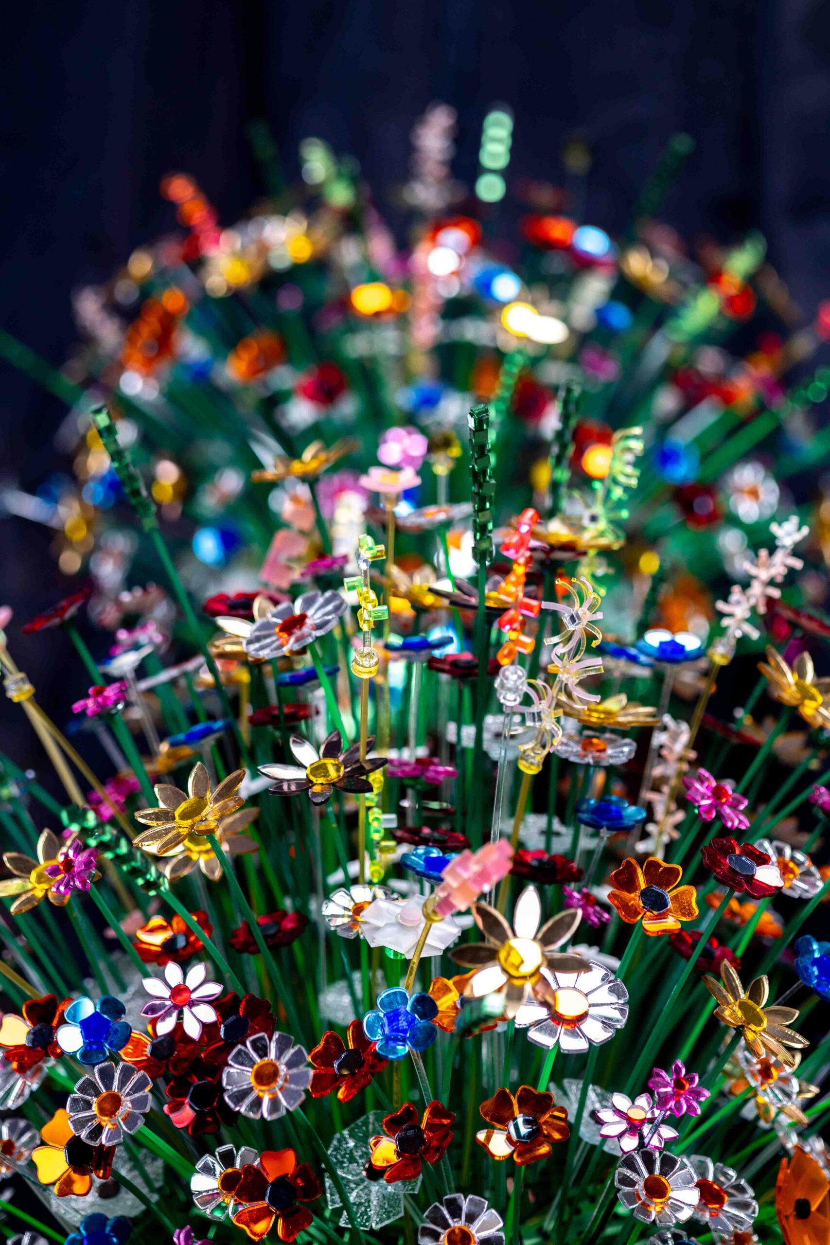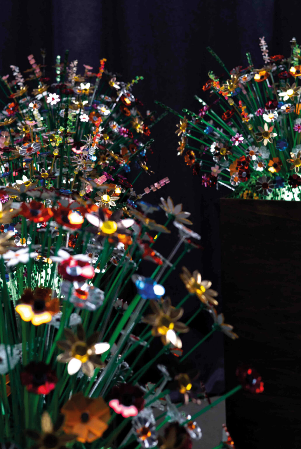 Naast de Quilted Mirror Objects als onderdeel van “Basic Instinct: Making-With” presenteert mo man tai ook 6 grote bloemstukken in het restaurant van Kazerne. Met behulp van nog kleinere resten acrylaat illustreren de grote boeketten, die elk bijna 300 handgemaakte bloemen bevatten, de stelling: “De menselijke fascinatie voor ‘kralen en snuisterijen’ – de glans van schoonheid – is zo oud als de beschaving.”