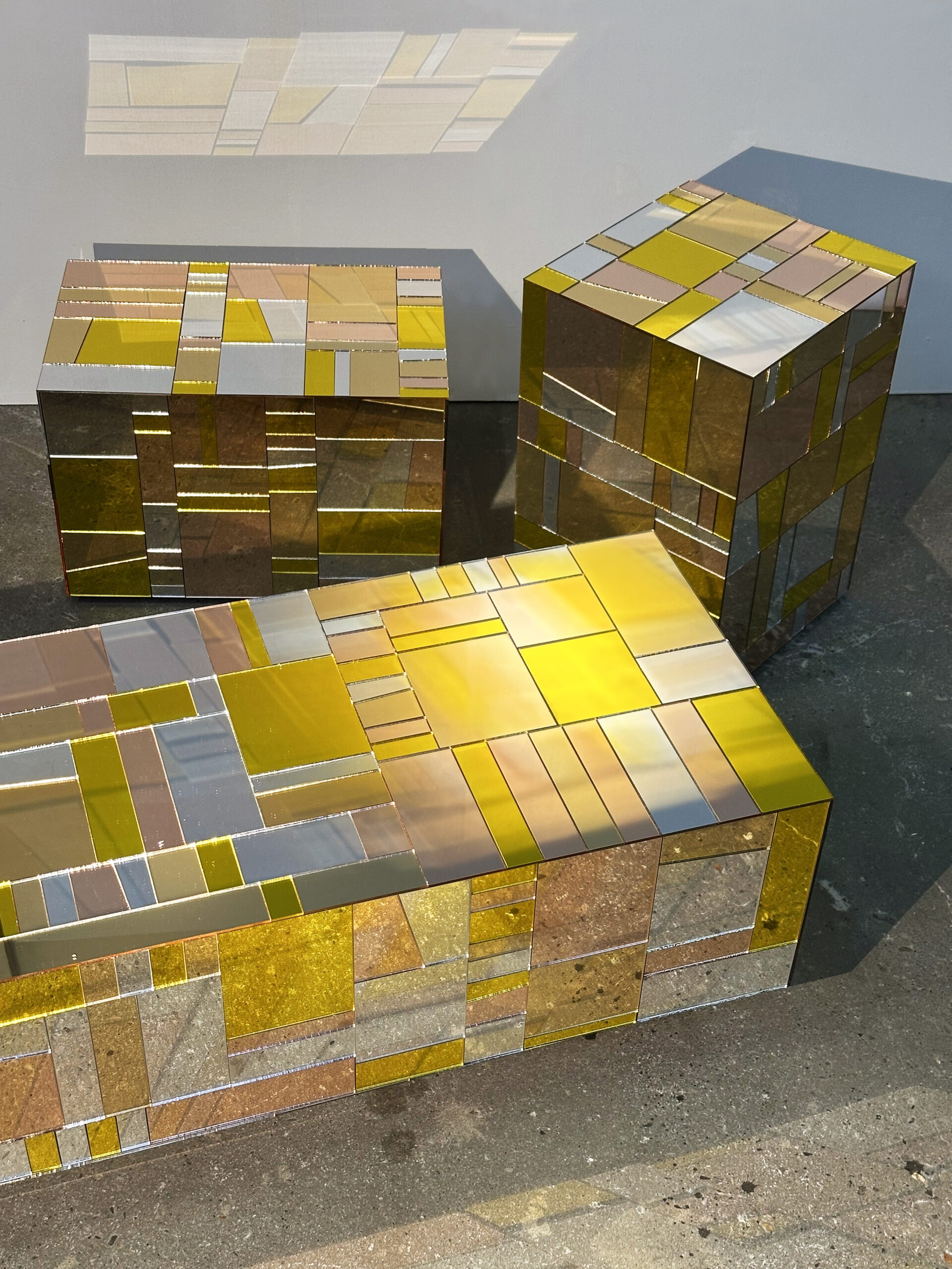 The first installment of this bold new collection was presented at 5Vie during Milan Design Week 2025. With a playful sensibility and a commitment to eco-conscious design, studio mo man tai transforms leftover pieces of acrylic mirror material into dynamic, geometrically composed furniture pieces—ranging from tables, benches and stools to mirrors and pedestal.