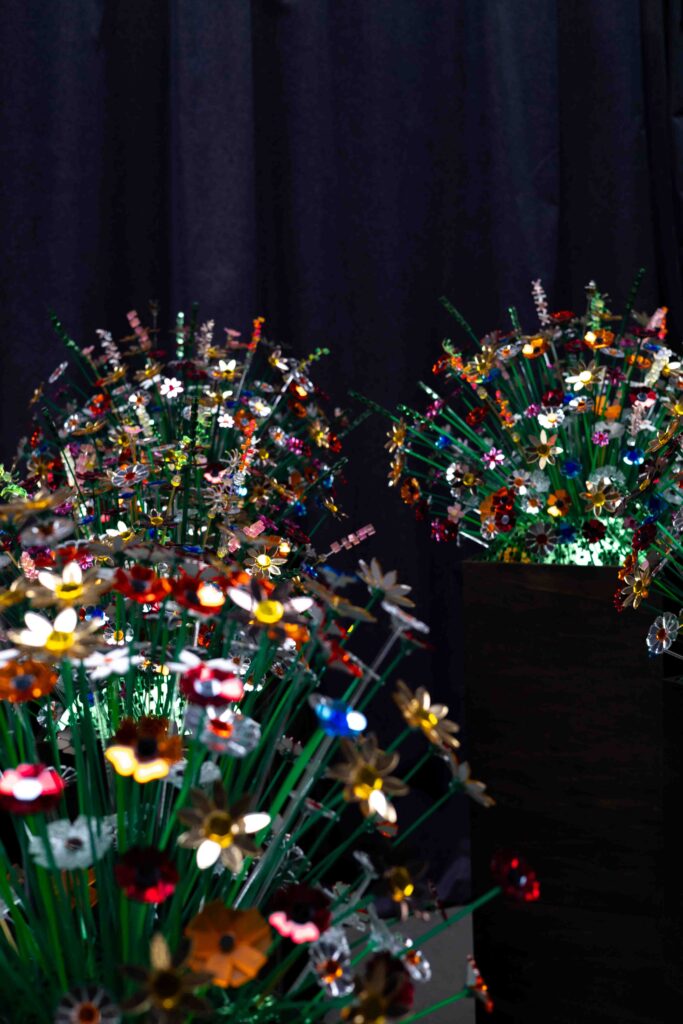 Next to the Quilted Mirror Objects as part of “Basic Instinct: Making-With” mo man tai also presents 6 large flower arrangements in the restaurant of Kazerne. Using even smaller leftover pieces of acrylic the grand bouquets, containing close to 300 handmade flowers each, purposely illustrate the proposition: “Humanity’s fascination with sparkle — from beads and baubles to glossy surfaces — is as old as civilisation itself.”